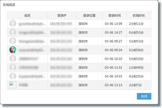 3)在线用户列表:可以查看当前团队在线成员信息。