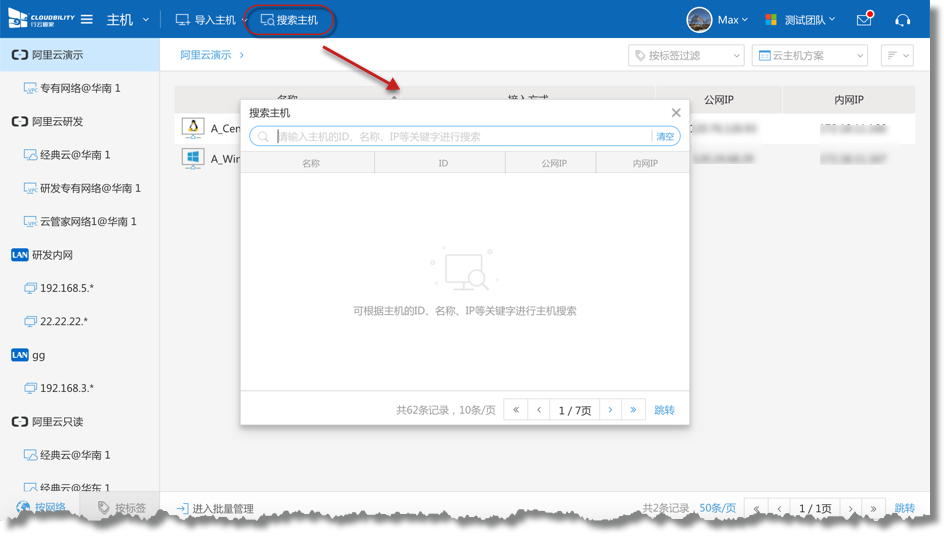 为了避免在之前版本中,主机列表搜索只能搜索当前页面内容的尴尬情况,我们精心准备了针对主机列表的全局搜索功能;IP、名称一键搜索,再也不用担心找不到主机啦!