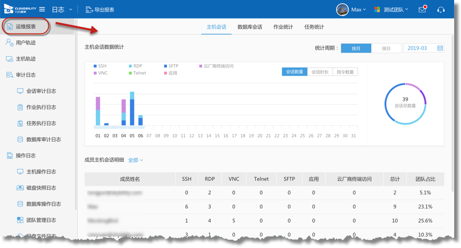 大家心心念念的运维报表来了!我们从主机会话、数据库会话、作业统计、任务统计四个维度全方位地分析资源访问、运维工作的情况,使您可以快速、清晰了解资源运维状况,让危险操作无所遁形。同时,运维报表支持按月或按日的周期导出,支持DOC、PDF格式。