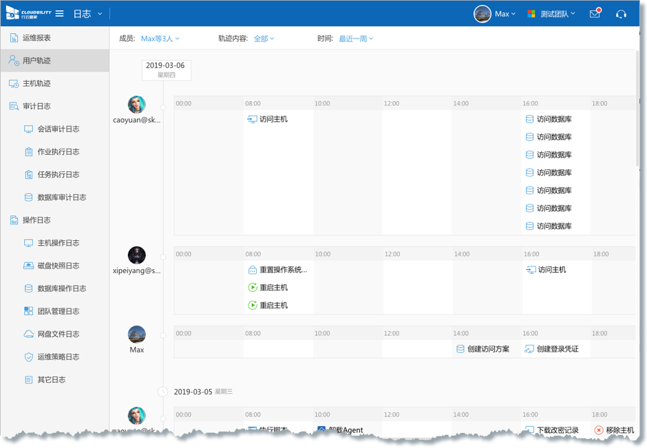 还在为查看繁多的审计日志而发愁吗?通过我们的用户操作轨迹、主机操作轨迹,可以清晰、直观地查看某些用户或某些主机在指定时间范围内的所有操作。