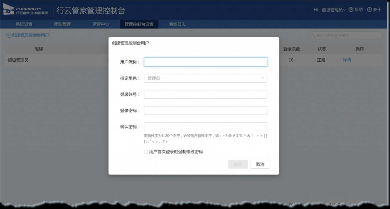 我们将支持新增、编辑及删除管理控制台的用户,需要注意的是:管理控制台的用户与团队中的用户不通用。