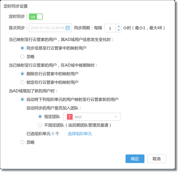 在过去的版本中,通过AD域导入的用户是只支持手动同步信息,而不支持定时同步,而且当AD域的信息发生变化时,在行云管家中是不会进行信息同步的;因此我们在新版本做了以下优化: