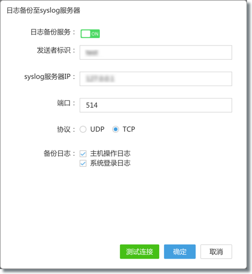 在众多客户的呼唤下,我们在新的版本中支持了备份日志记录至syslog服务器,我们目前支持备份的日志类型有:“主机操作日志”与“系统登录日志”,如果您有其他日志的备份需求可以反馈给我们的在线客服。