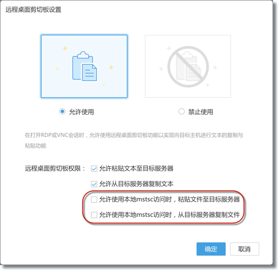 大家心心念念的Windows主机本地工具的文件剪切功能来了!我们在V4.12中支持了mstsc打开DRP会话时,通过“Ctrl C”与“Ctrl V”进行本地与目标服务器间的文件交互;同时在运维策略的剪切板设置中,支持对文件剪切进行单方向限制。