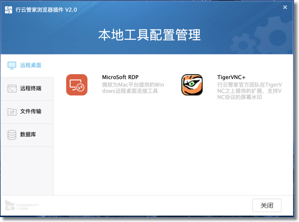 在广大果粉的呼唤下,我们在V4.12中支持了MAC客户端对本地工具的一键唤醒功能,目前支持的本地工具有:iTerm、Microsoft Remote Desktop以及TigerVNC+。快 下载最新的MAC版浏览器插件程序 来体验吧。