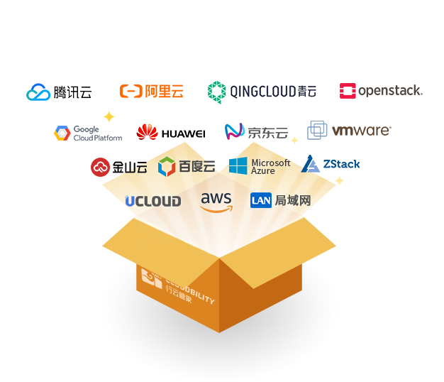 行云管家支持业界主流的公有云厂商和OpenStack、VMware等私有云设施,以及物理服务器、虚拟机、网络设备、存储设备等。其提供了多种主机导入方式,极大的提高了企业对IT资源管理的统一性、灵活性和适应性。