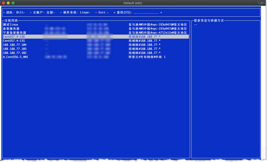 行云管家在很早的版本就已经支持了一键唤醒本地工具与访问串访问目标主机,但是对于长久以来依赖于Putty、Terminal等本地工具来访问主机的工程师来说,每次打开WEB界面再唤醒本地工具,还是没有做到足够的高效与极致的体验。那么我们在新版本中支持了行云管家跳板机的功能,只需使用任意本地工具SSH到行云管家,并输入登录行云管家的用户名与密码,即可在本地工具中直接获取所有授权主机的列表,简单操作后即可快速进入到目标主机的会话中。