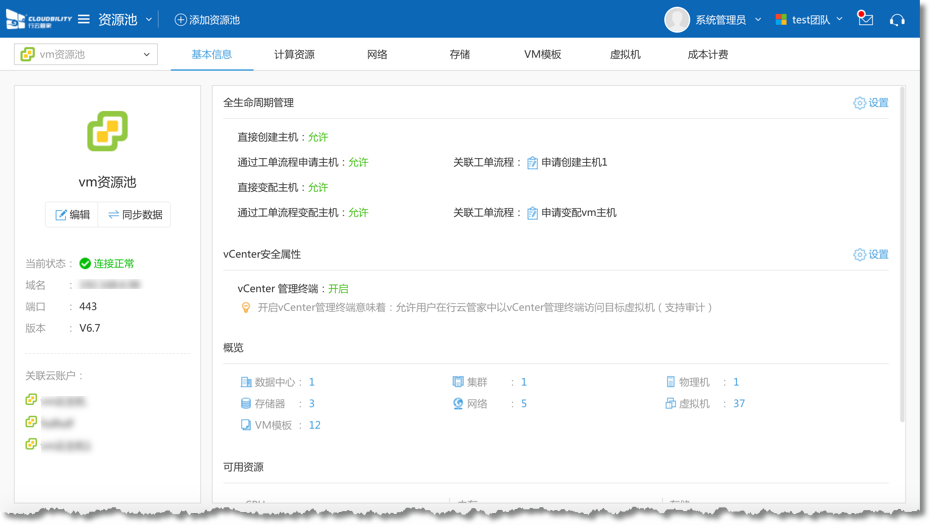 1)VMware资源池优化:我们在新版本中对VMware资源池的UI及功能进行了优化及丰富,包括但不限于: a.UI风格变化;