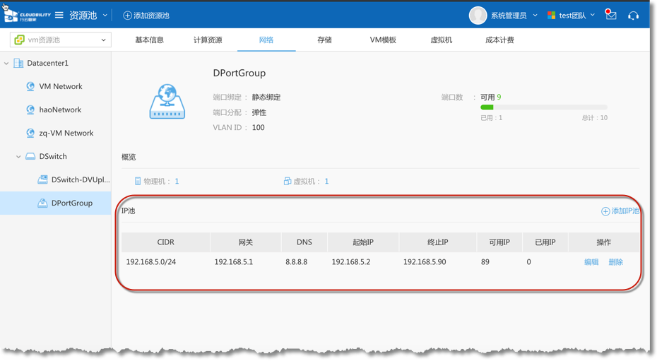 c.支持基于“网络与端口组的IP池”对新创建/申请的主机进行IP划分;