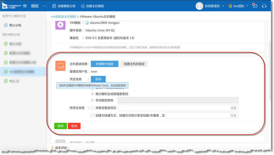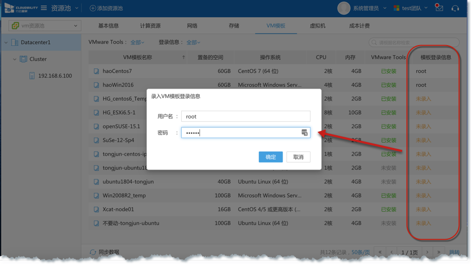 2)创建VMware主机优化:为了更好的完成VMware主机的全生命周期管理,针对VMware主机的创建我们支持了以下功能:a.支持将登录信息与主机创/申请者进行关联;