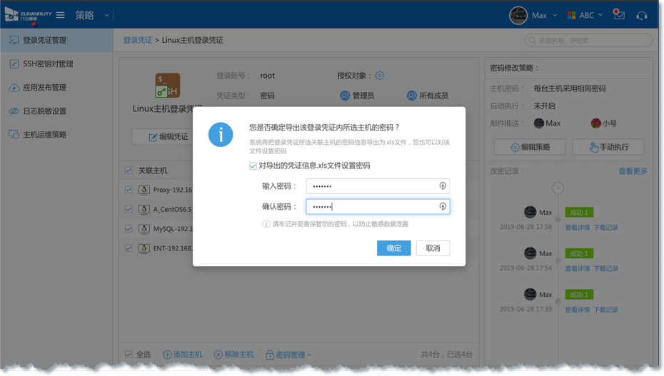 为保证您登录凭证信息的安全性,我们在新版本中针对登录凭证做出以下优化:1)支持导出凭证时,对Excel文件加密;