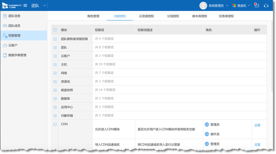 3)功能权限界面优化:随着行云管家功能的逐渐丰富,在功能授权界面也变得越来越“冗杂”,为了便于您更好的梳理所有功能项与分配权限,我们在UI层面对每一个模块支持了“展开与折叠”。