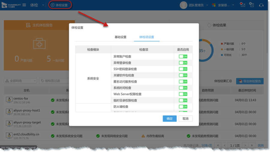 有用户反馈,针对体检中心的体检项无需每一项都对主机进行体检,因此希望可以对体检项进行批量的启停设置;安排!