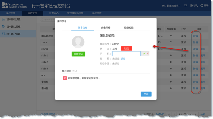 针对私有部署版管理员用户,在新版本中可在管理控制台对团队用户的手机、邮箱和OTP动态令牌信息进行维护,方便您更好的对用户进行管理。