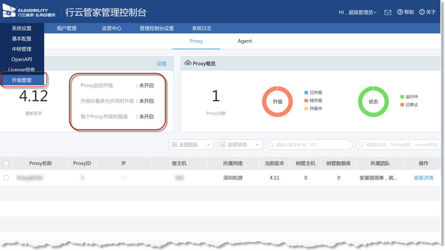 针对资产规模较大的私有部署版客户,在升级时可能遇到批量升级Agent及Proxy所带来的流量风暴的困扰;在新版本中我们新增了私有部署版本的"升级管理"功能,可自定义系统升级时,对Agent或Proxy是否进行自动升级、升级的并发数量及升级限速进行设置;同时如果关闭了自动升级,也支持手动对Agent及Proxy进行升级。