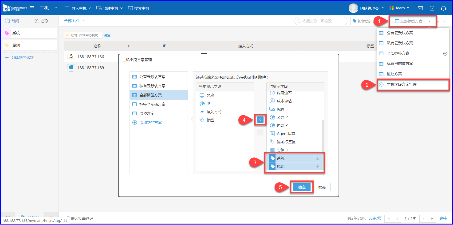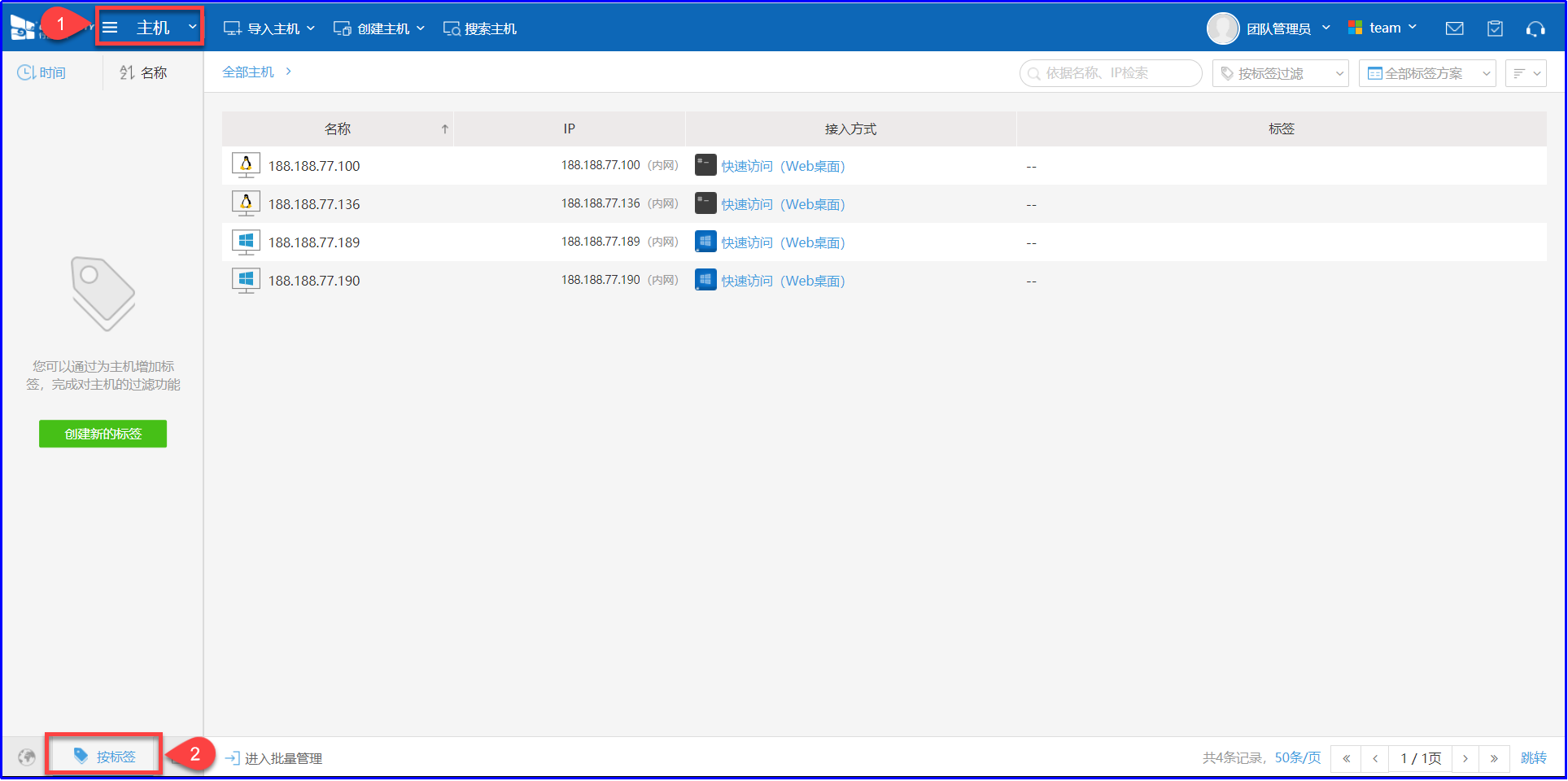 返回到主机列表中,即会显示标签列,此时您可以对标签进行排序、检索;