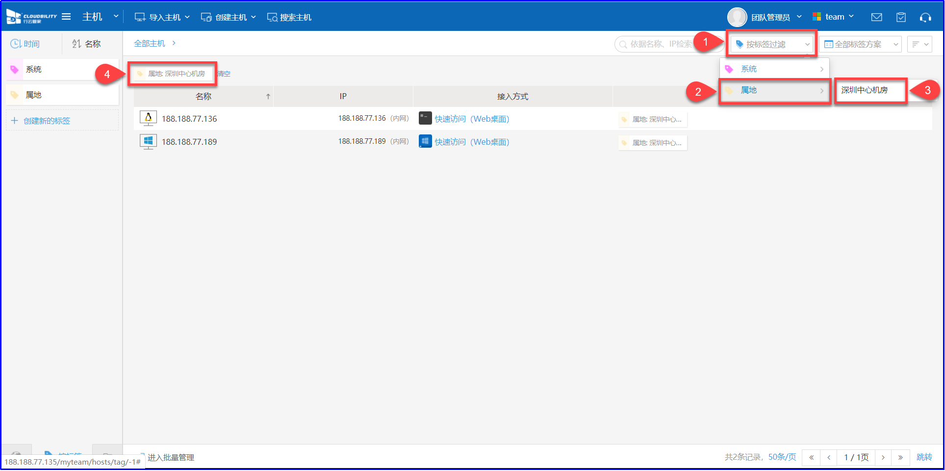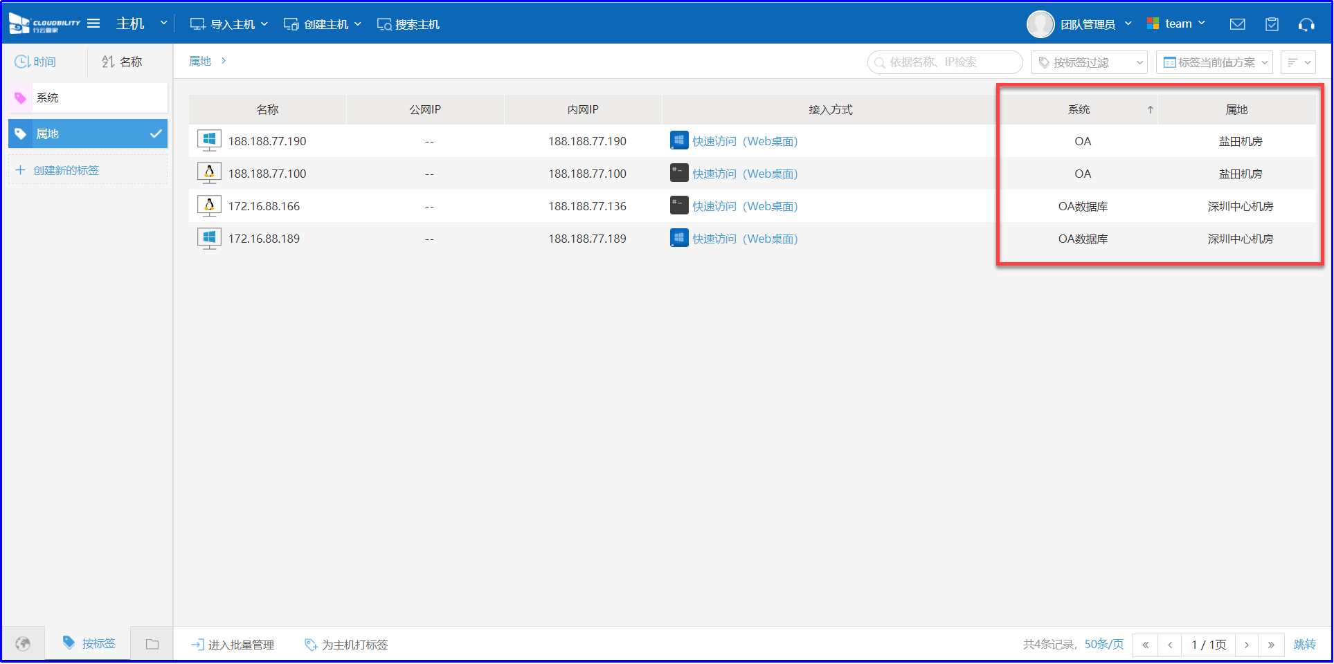 按标签进行主机检索,方便快捷的以您定义的分类方案进行主机查找,协助您高效的进行主机搜索和管理。