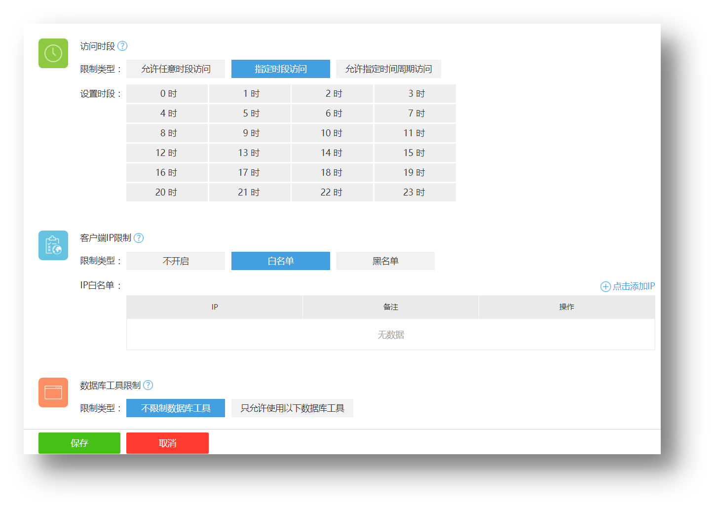 可在行云管家访问规则中定义允许用户访问数据库时的访问时段、客户端IP限制,以及允许使用的数据库工具;可对数据进行脱敏,定义针对哪些表格的那些特定字段进行脱敏;定义敏感指令规则;