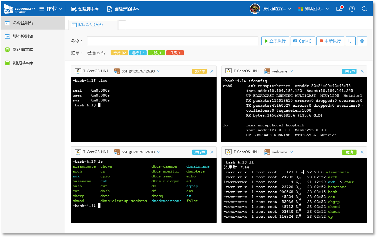 - 脚本控制台: 对多台主机批量执行指定脚本,并支持脚本的自定义