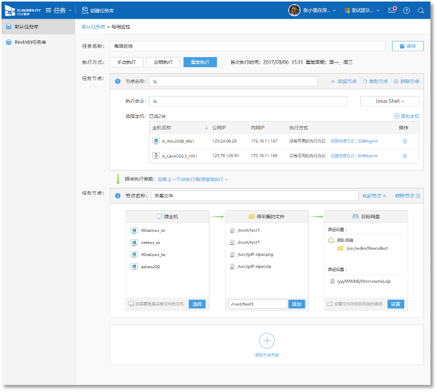- 任务编排与执行 : 将需要执行的作业流程化、模版化,并可指定规则按需执行