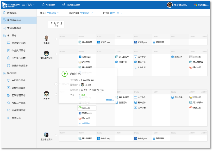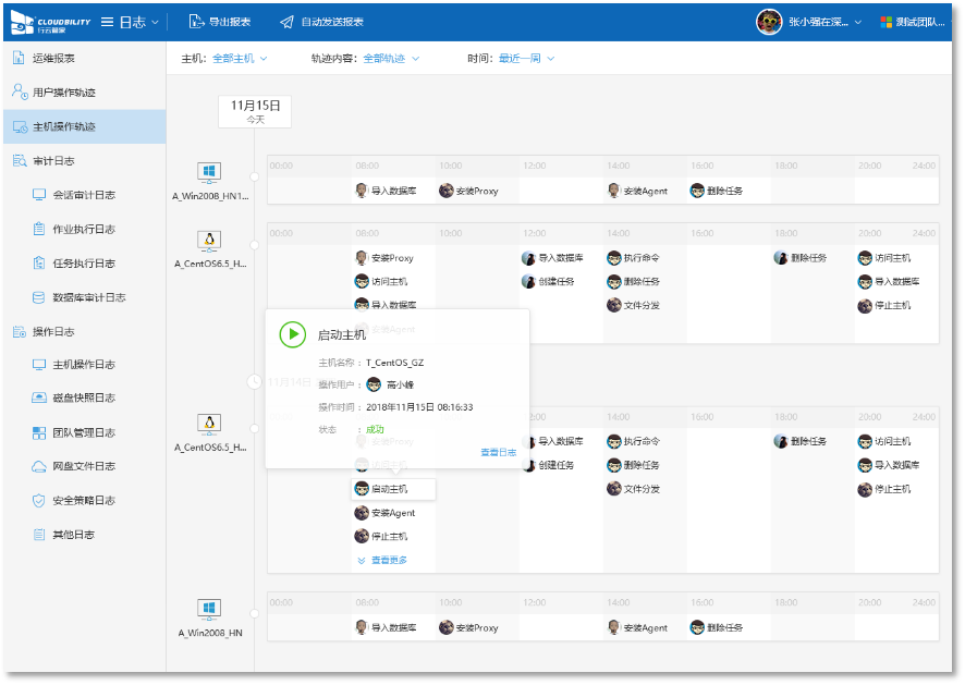 以主机的视角展现企业内所有成员对指定主机的所有操作行为