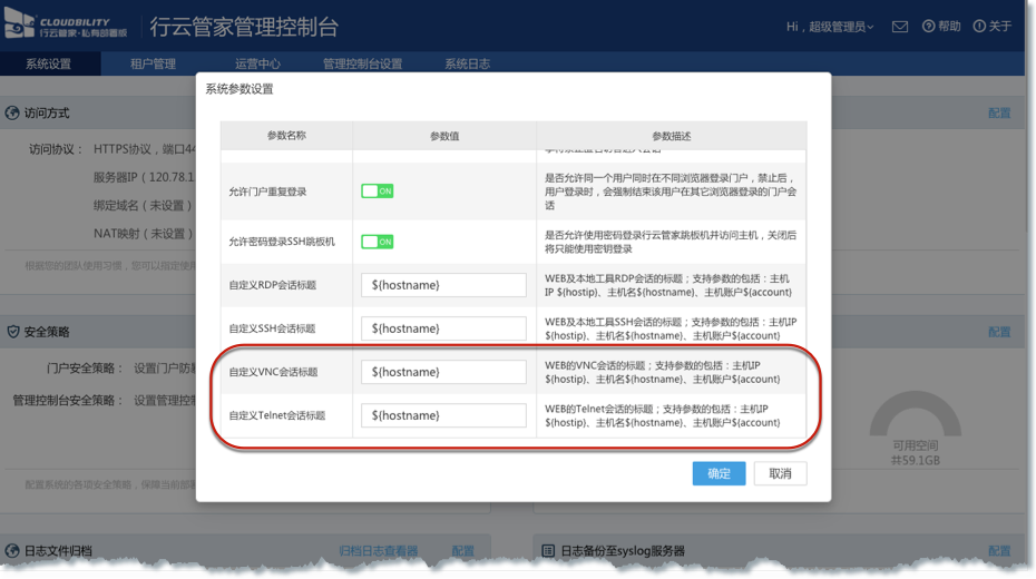 在已支持了SSH、RDP协议设置会话标题的基础上,本次更新支持了对VNC及Telnet协议进行会话标题设置的功能。