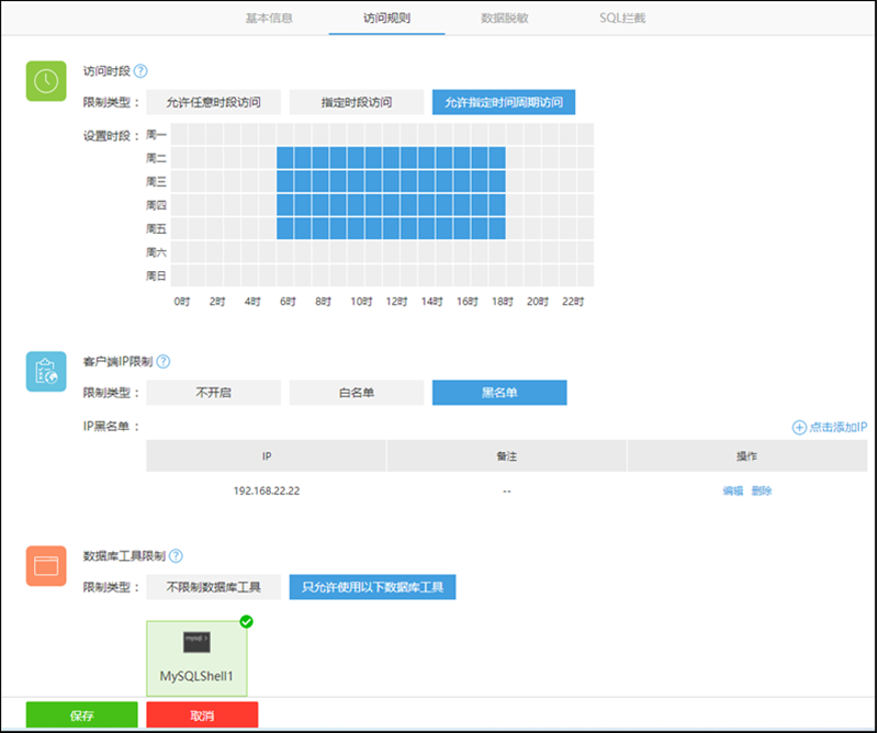 数据库运维审计可对9种不同类型的数据库设定访问方案,快速设定各数据库的访问规则方案、数据脱敏方案、SQL拦截方案,并以审计日志和审计录像的形式保存。