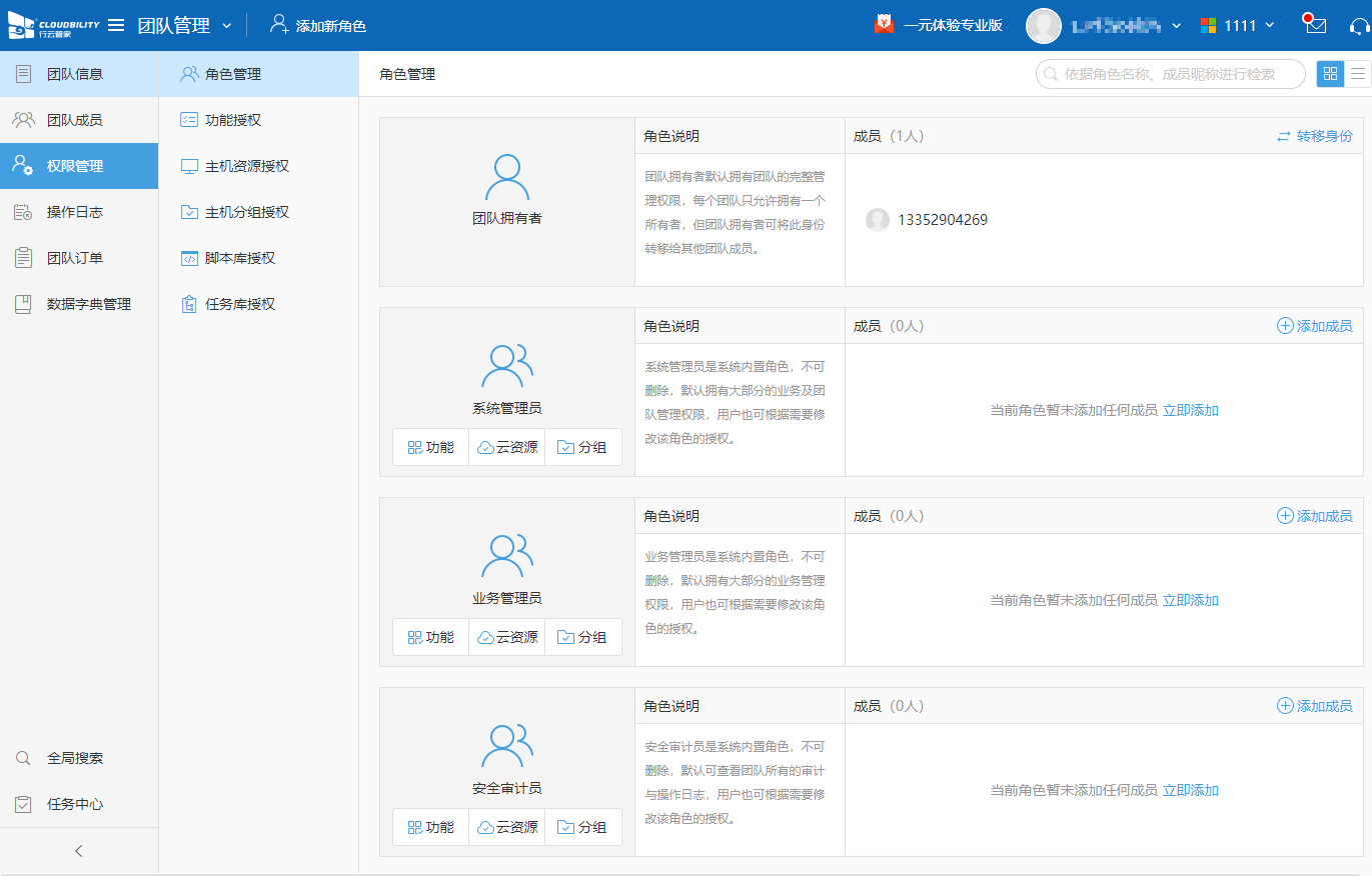 权限管理中采用基于角色、部门、成员的访问控制模型来实现权限控制,具体来说,是将授权模型划分为功能授权和资源授权两个维度,在两个维度基础上进行对象授权(角色、部门、成员),将这两种权限授权给团队中的某成员或他所在的角色、部门时,该成员便自动拥有了所被授予的各项权限,精细化的授权模型避免了人员权限混乱不清的局面。