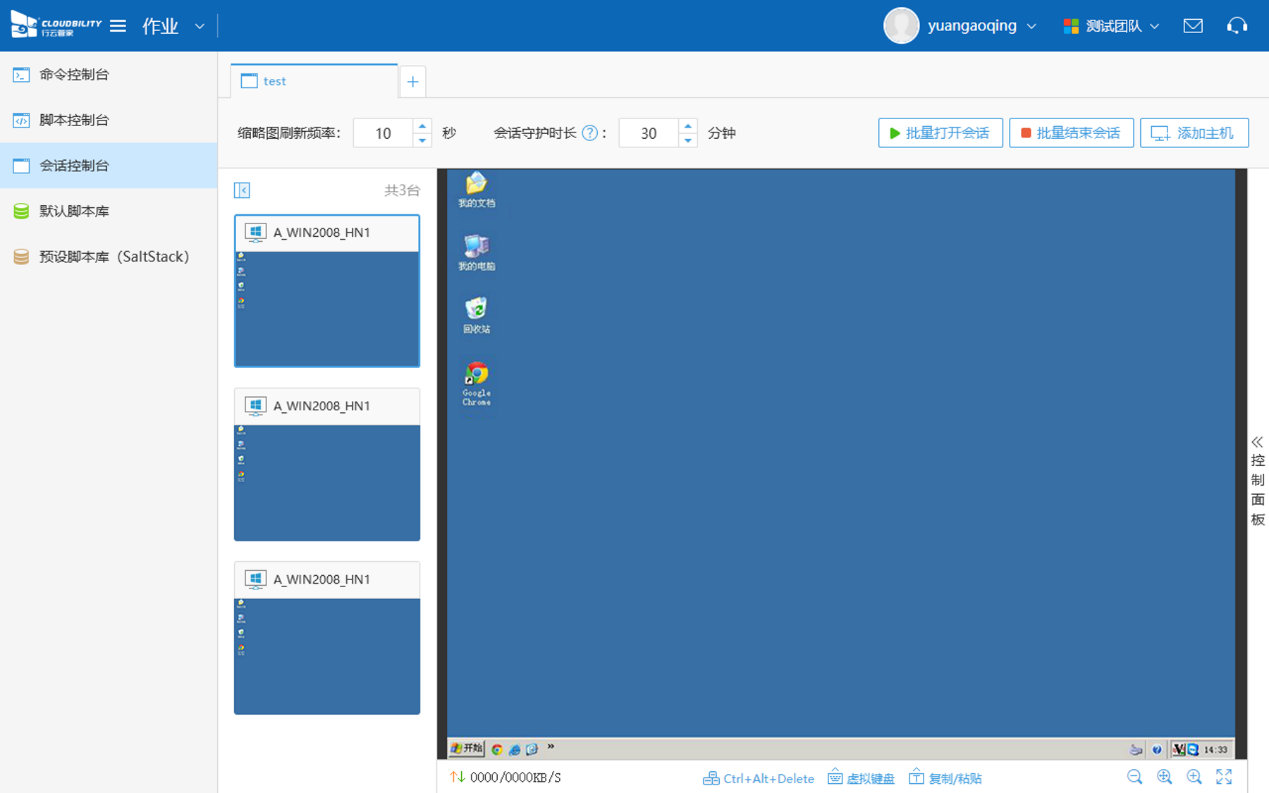 可同时批量打开多台主机的会话,将日常高频运维的主机加入会话控制台中,方便日常批量打开会话的场景。