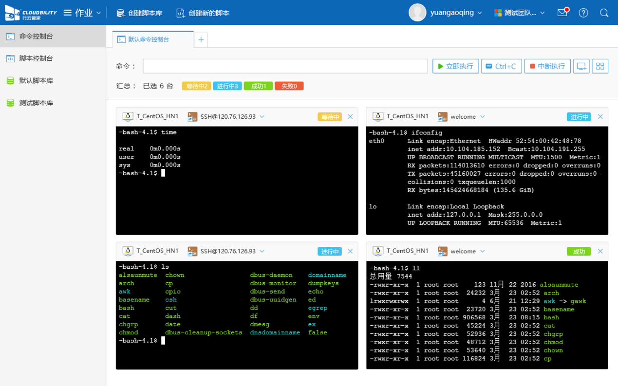 命令控制台提供了一种轻量化的批量执行命令的方法,可同时对多台主机批量执行命令。用户无需提前编写命令,而是可以随时对所选主机执行任何命令,并实时查看命令输出,主机输出界面更友好。
