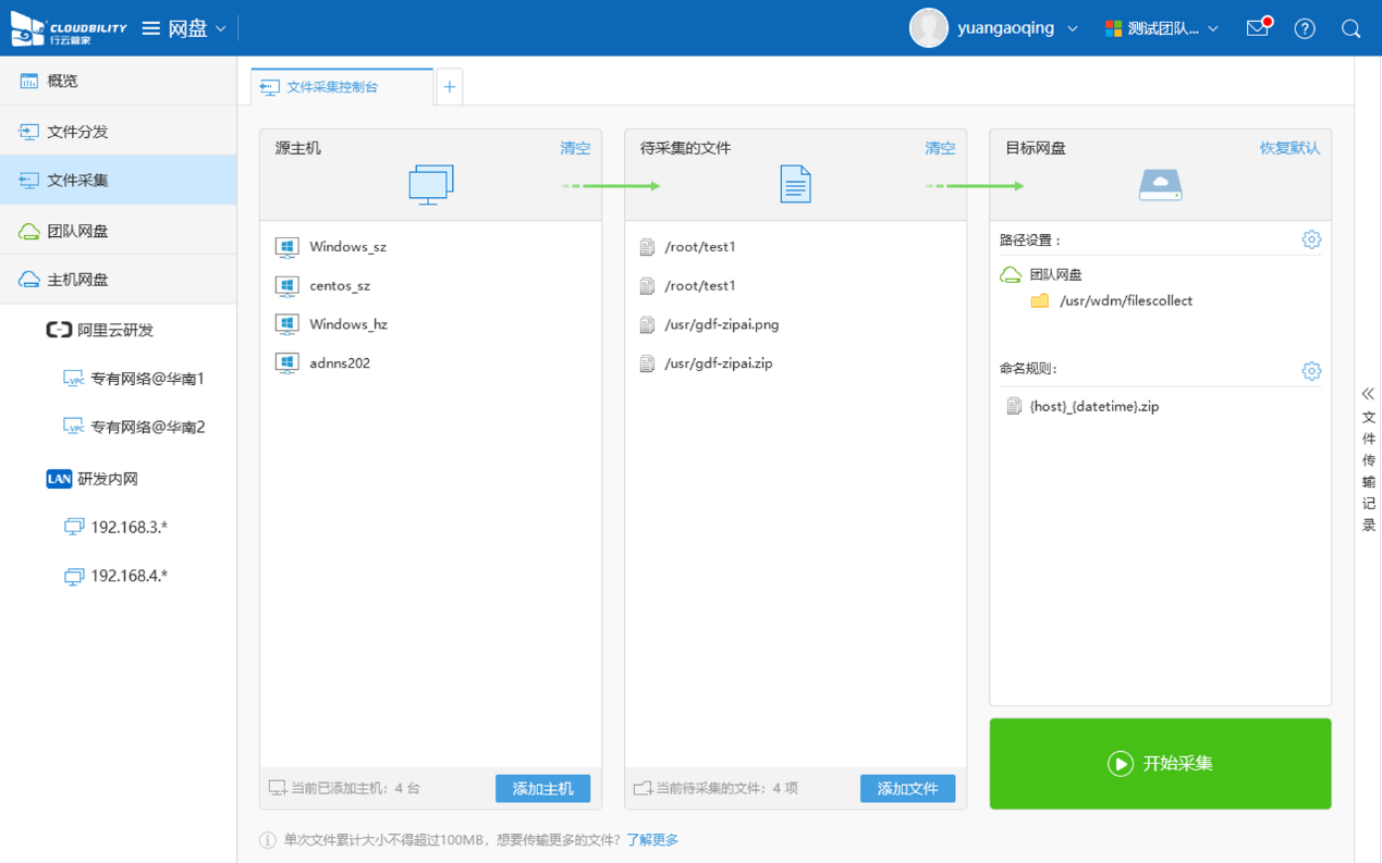 将文件批量分发到指定主机,或将指定主机的文件采集到指定位置,适合主机批量打补丁/批量采集应用日志等场景。
