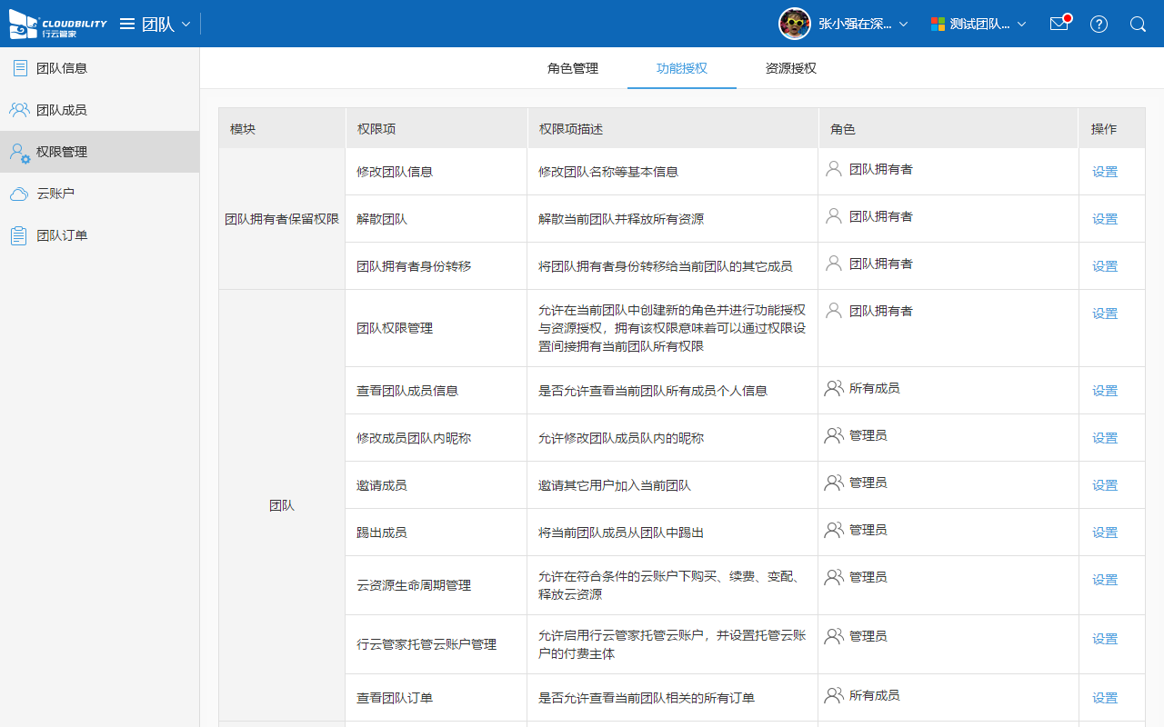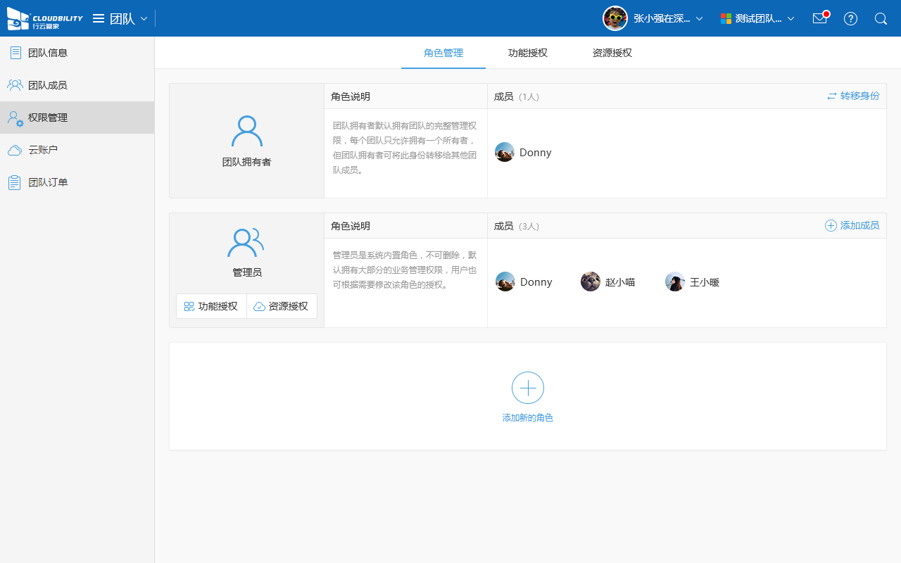 行云管家堡垒机采用基于角色的访问控制模型(Role-Based Access Control)来实现权限控制,具体来说,是将授权模型划分为功能授权和资源授权两个维度,而这两种授权都是针对角色的,角色是功能权限和资源权限的载体。当团队中的成员被添加到某一角色,该成员便自动拥有了该角色所被授予的各项权限。