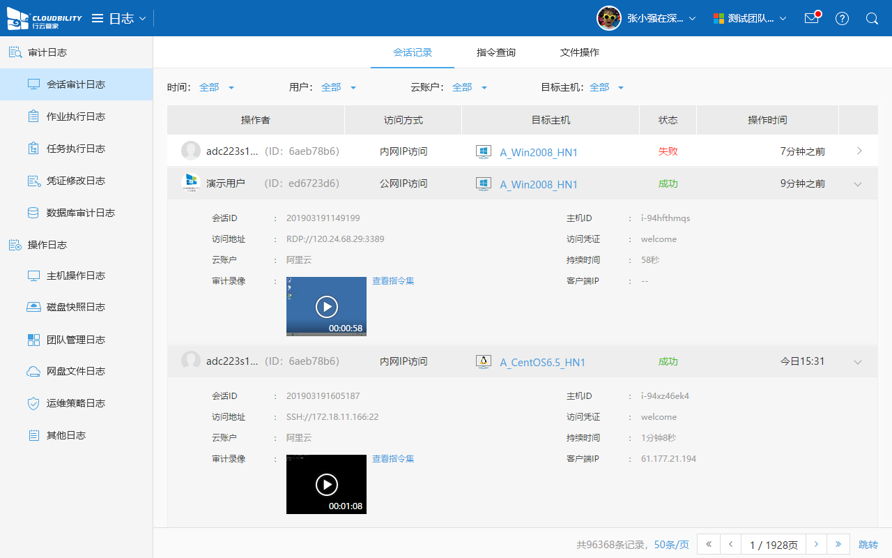 整个运维过程将会被以录像的方式进行记录,录像存储在云端(服务器端),可避免数据被篡改。可根据操作记录定位回放或完整重现运维人员对目标设备的整个操作过程,从而真正实现对操作内容的完全审计,整个录像过程: