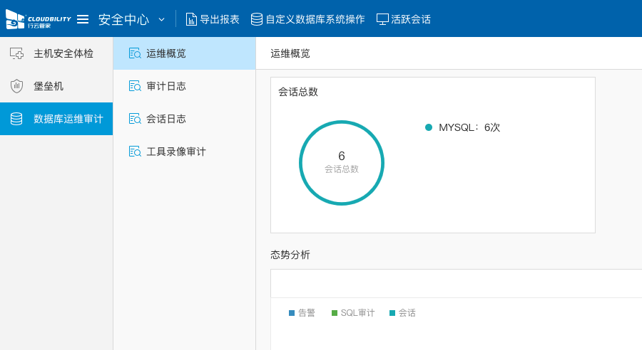在新版本中,我们对以前的数据库运维审计进行了重构,分为运维概览、审计日志和会话日志,从三种不同维度为用户展示运维记录。