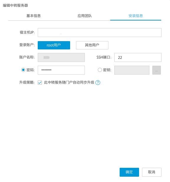 在过去的版本中,门户升级后,中转服务不会与门户自动升级,此时需要管理员手动对每一台中转进行升级,这样会让用户觉得很不方便;在新版本中,我们给中转服务器新增了自动升级的配置,用户勾选后,中转会跟随门户自动升级,节约了用户的时间成本。