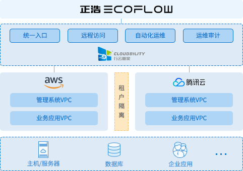 正浩创新绝大部分的管理系统、业务应用都部署在云上,并广泛分布在AWS以及腾讯云的不同VPC网络环境中,在之前如要操作云上资源,需分别对AWS、腾讯云进行远程访问、密码/凭证登录、文件上传/下载、系统升级/打补丁等操作,且两个云厂商的云资源无法协同使用。