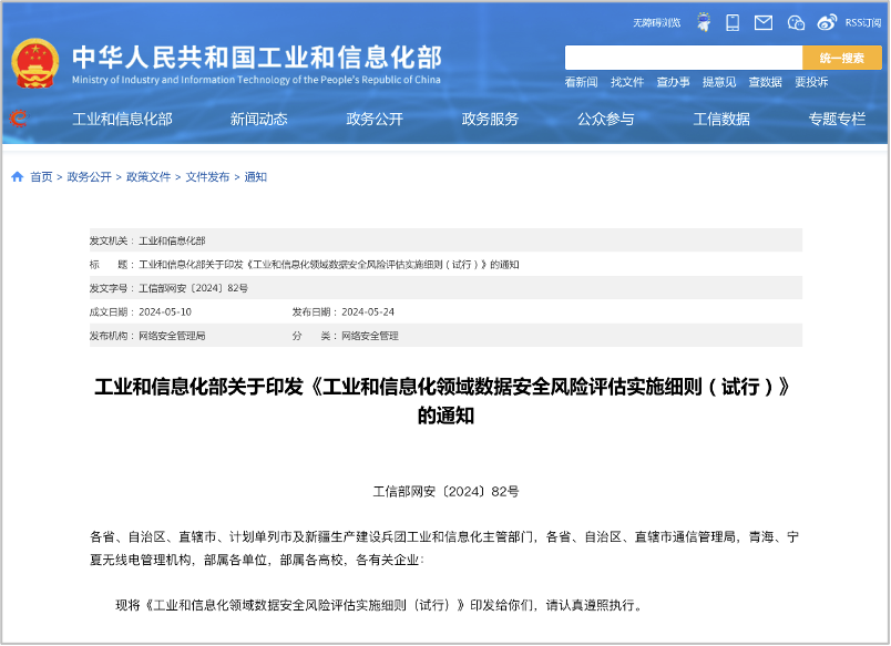 2024年6月1日,工信部颁布的《工业和信息化领域数据安全风险评估实施细则(试行)》(以下简称《细则》)开始实行,旨在引导工业和信息化领域数据处理者规范开展数据安全风险评估工作,提升 数据安全 管理水平。《细则》的颁布是我国数据安全规制的一次重大举措,突显了国家对于大力加强信息安全保护的战略意图和决心。