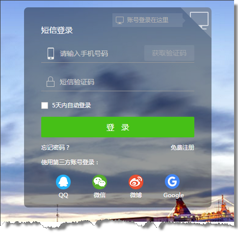 增加短信登录方式:
