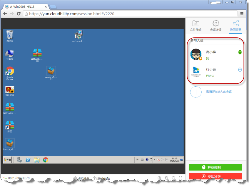 在对主机运维时,我们会碰到需要多方进行“协同会诊”的场景,而最好的协同是让参与者面对相同的工作场景。在本版本中,行云管家新增了针对会话进行协同分享的功能特性。用户只要将一个分享链接发送给好友,即可邀请其进入会话与自己一起“协同会诊”,双方能够同步观察云主机的远程桌面/终端。