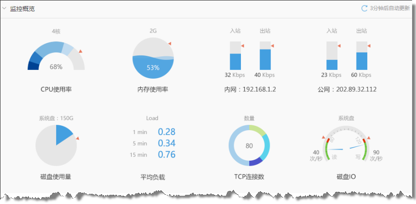 更好的适配阿里云1.1.X版本的监控项,相比0.X版监控插件,新的阿里云监控增加了CPU的使用率明细、内存用量、磁盘用量、磁盘IOPS等更加详尽的监控指标。考虑到有很多阿里云用户未及时升级,行云管家依然保留了对旧版监控插件的支持,但建议用户对监控插件进行升级已获得更好的监控体验。