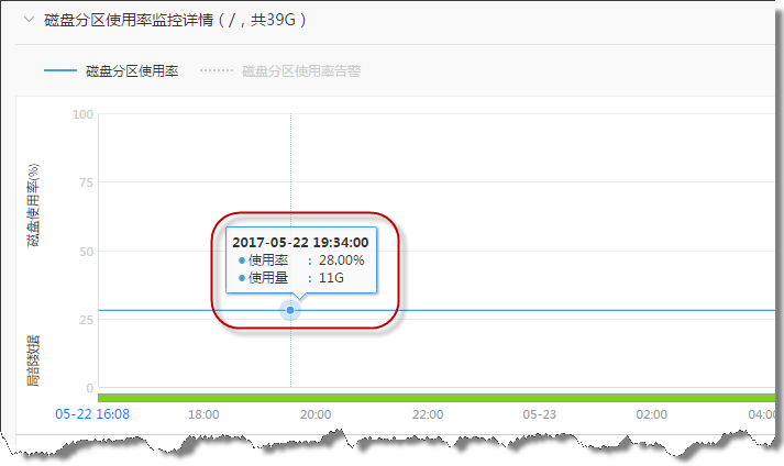 针对阿里云新版监控插件,除空间使用率(%)之外,还能够显示磁盘分区具体的使用容量信息,方便用户对磁盘使用状况有更直观的感受。