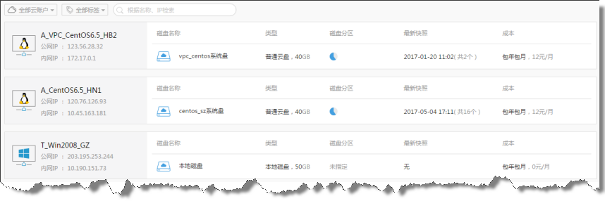 优化磁盘列表UI,让磁盘与云主机的从属关系更清晰,同时增加每块磁盘的分区信息,让用户能够一目了然的知晓所有磁盘分区的使用状况。
