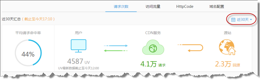 支持按30天的跨度查看CDN监控数据,让CDN的监控趋势更加直观。
