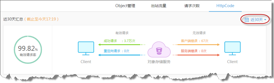 支持查看30天跨度的Bucket监控数据: