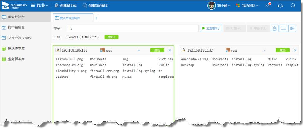 脚本作业能够满足部分批量执行脚本的需求,但当用户需要批量执行一些简单命令的时候,如果再用脚本的形式来封装执行就显得过于复杂。命令控制台能够让用户快速直接的在主机上执行一些简单命令,如top、ls等,以类SSH终端形式的控制台方式实时输出,是批量执行主机命令的极佳选择。