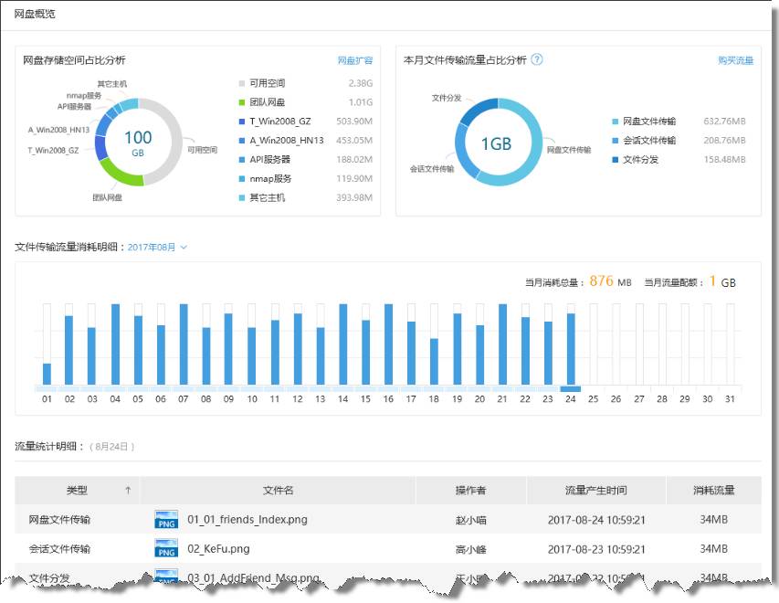 如果用户频繁传输文件导致下行流量不足时,建议将团队升级为更高版本已获得更多流量。了解各版本团队的流量配额