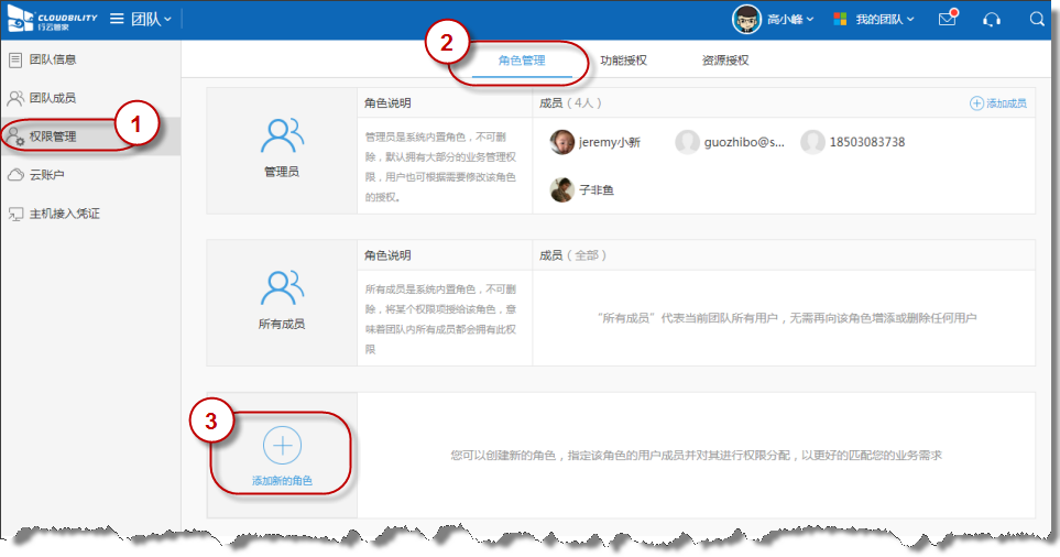 除团队拥有者和管理员两个预设角色之外,团队拥有者可以在团队内新增和删除角色,满足用户更细粒度化的权限需求。