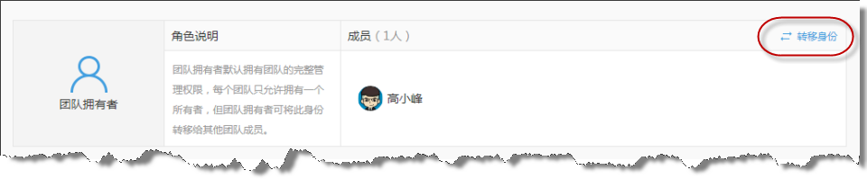 团队拥有者身份允许转移给团队内其他成员,方便团队管理权限的转移。