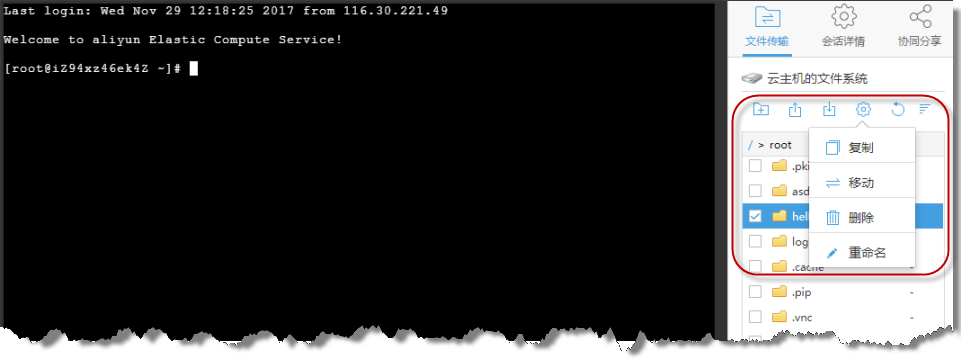 对于一些喜好图形化操作界面的Linux用户来说,行云管家的文件传输功能方便他们进行文件上传和下载操作,本版本再次强化了SSH的文件传输能力,新增了文件(夹)的复制/移动、排序的功能。
