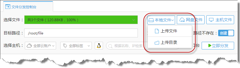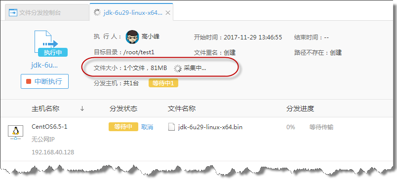 b)主机文件采集过程异步化,用户无需等待文件全部采集到服务器即可执行分发操作。
